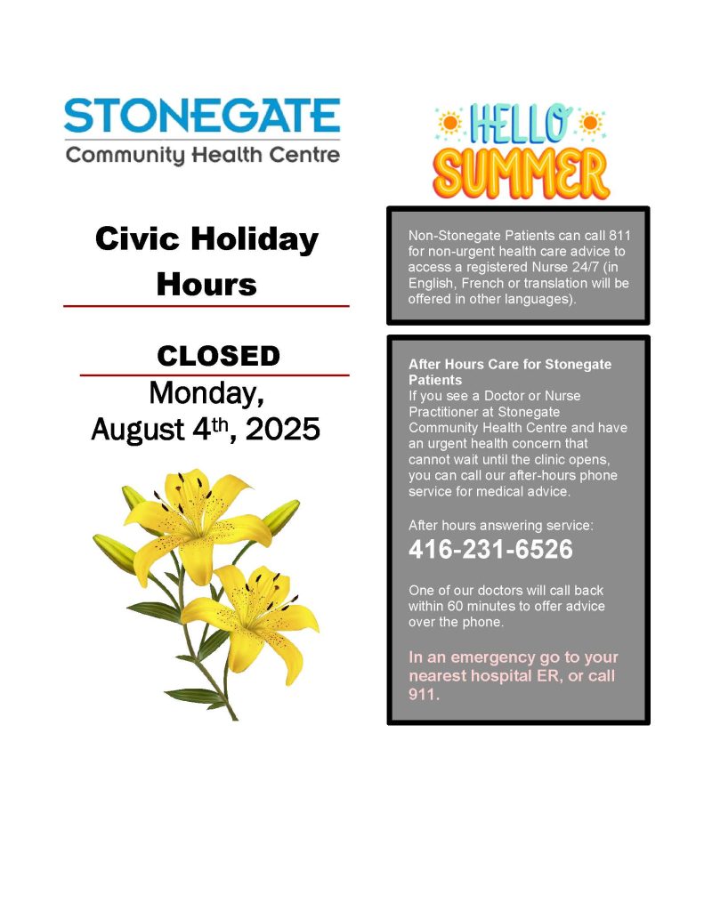 At this time Stonegate CHC’s Primary Health Care waiting list is CLOSED.