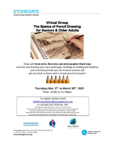 Virtual Group -The Basics of Pencil Drawing for Seniors & Older Adults Draw with local artist, illustrator and photographer Mark Cope and dive into drawing your own landscapes, building up shading and shadows and essential portrait tips; the 4-week sessions will get you back to basics with a simple pencil and paper! Thursdays Mar. 9th. […]
