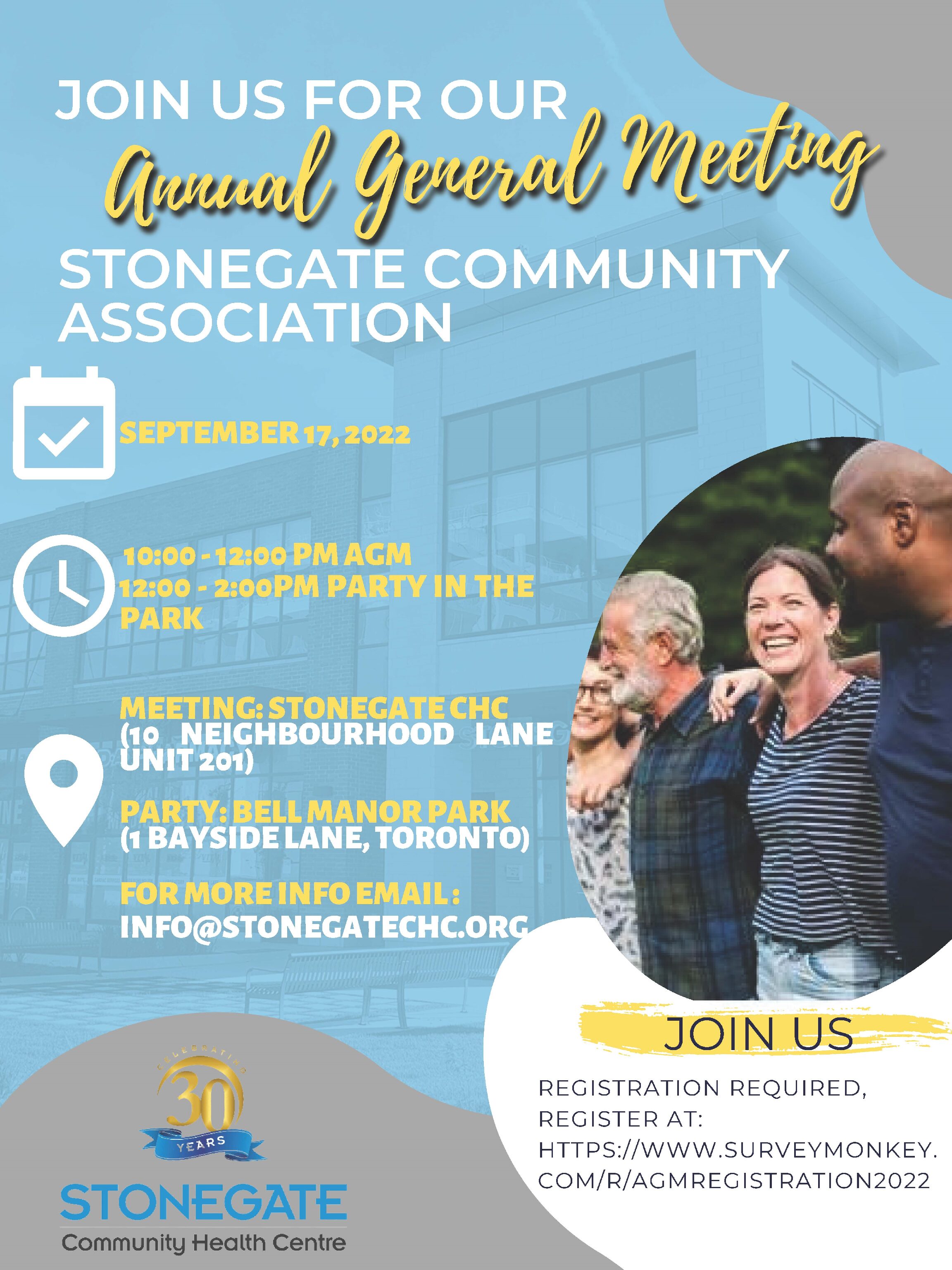 Join us for our Annual General Meeting 2022 Celebrating 30 years of service. Registration is required to attend the meeting. You can registration by calling at 4162317070 ext 307 or completing the online form at: https://www.surveymonkey.com/r/AGMREGISTRATION2022