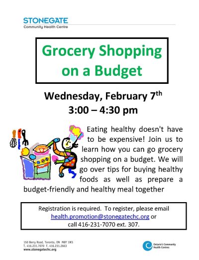 Stonegate Community Health Centre 10 Neighbourhood Lane, Unit 201, Stonegate CHC, ETOBICOKE, Ontario, CanadaTODDLER FOOD FIT A 12- week program for children 18-36 months of age and their caregiver Date: November 14, 21, 28 December 5 & 12 January 16, 23 & 30 February 6, 13, 20 & 27 Stonegate CHC 10 Neighborhood Lane Unit 201 10:00 a.m. - 1:00 p.m. Families will take part in cooking and […]